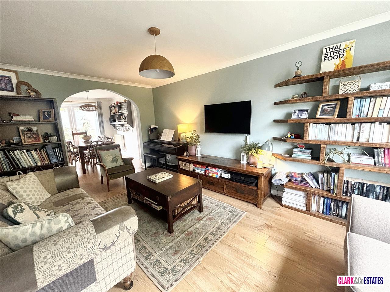 Spacious entrance hall with stairs rising, WC, separate doors to the lounge and kitchen. At the front of the property is a good size lounge with an archway leading to the kitchen diner. A luxurious fitted kitchen with ample space for appliances and a door to the garden. The dining area is a good size and has double doors to the garden. Door to the utility room, which has been used as a number of spaces. Further door from the utility room to the downstairs bedroom which is also used as a home office.