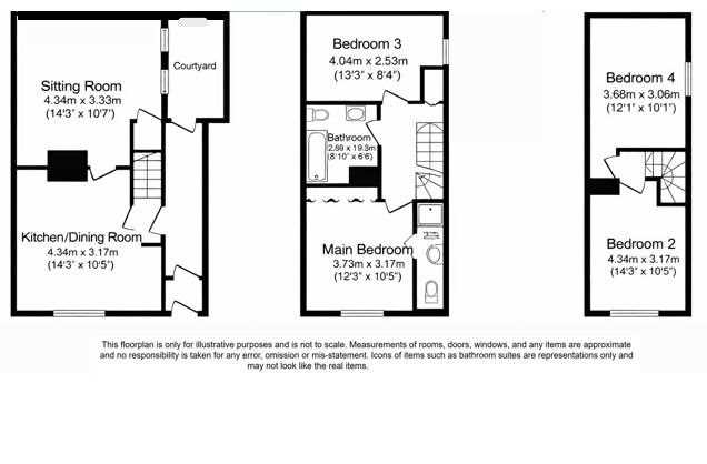 Overall, the property offers four well-sized bedrooms, a spacious living room, a combined kitchen/dining area, a family bathroom, and a private courtyard, making it a practical and appealing home with good living space across three levels.