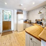 Luxurious open plan living with three windows to the front and built in banquette seating with views to the river. Fitted kitchen with a selection of integrated appliances and a door to the sun terrace. Lovely wooden floors throughout. Spacious understairs cupboard.