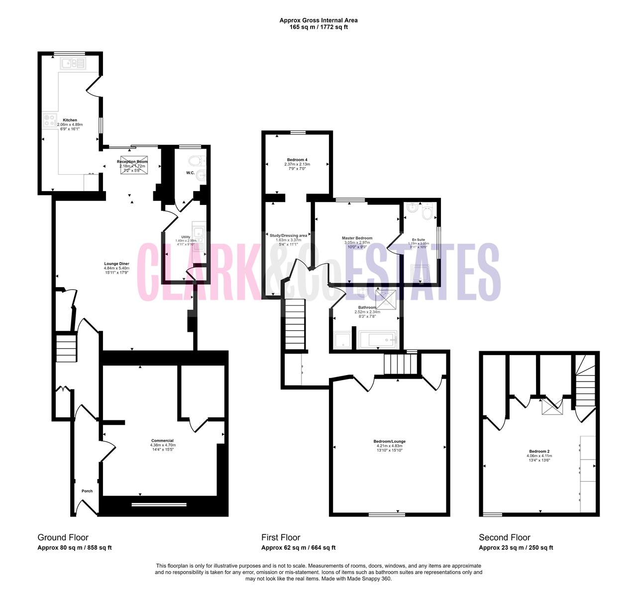 Entrance into the hallway with the commercial unit to your right. Further door leading into the main hallway with stairs rising and a storage cupboard. Open plan lounge diner with gas effect log burner and double doors to the garden. Utility room with sperate WC. Fitted kitchen breakfast room with door to the rear garden.