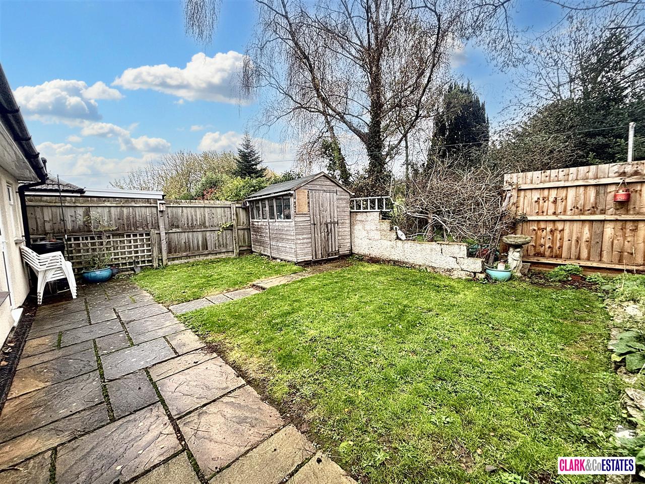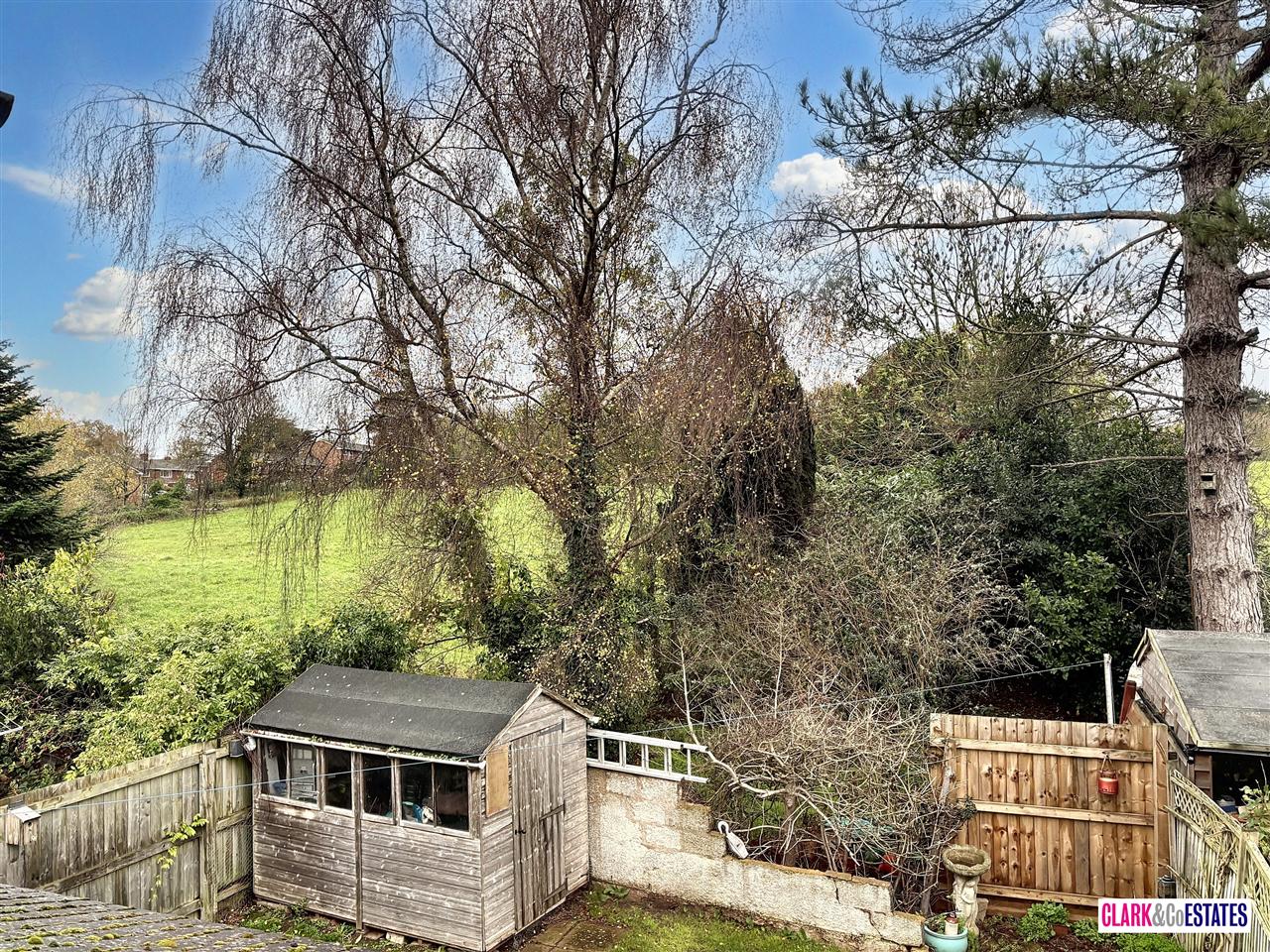 Lawned rear gardens that back onto the fields and open countryside. Large storage shed.
