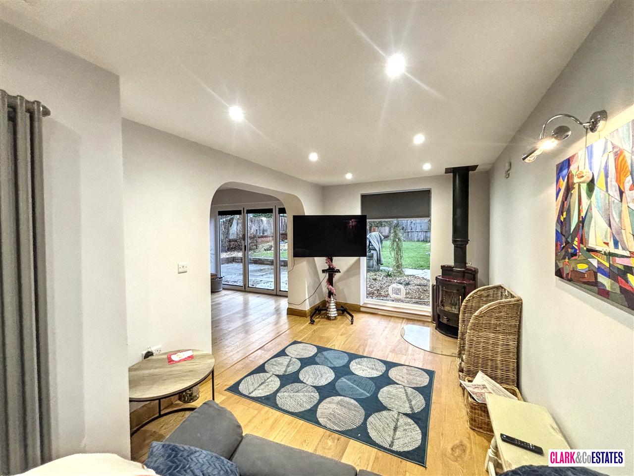 This fine home offers a garage and parking for several cars, with log burner and a large garden. With added extras including large stain glass window, CCTV and aircon system fitted. Handmade oak front door with secured locking system and stain glass window.