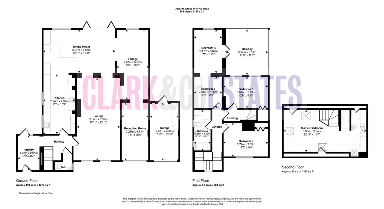 Landing with doors to all rooms and further stairs rising. Second bedroom to the rear with a good size dressing room with fitted, mirrored wardrobes and double doors to the rear balcony.