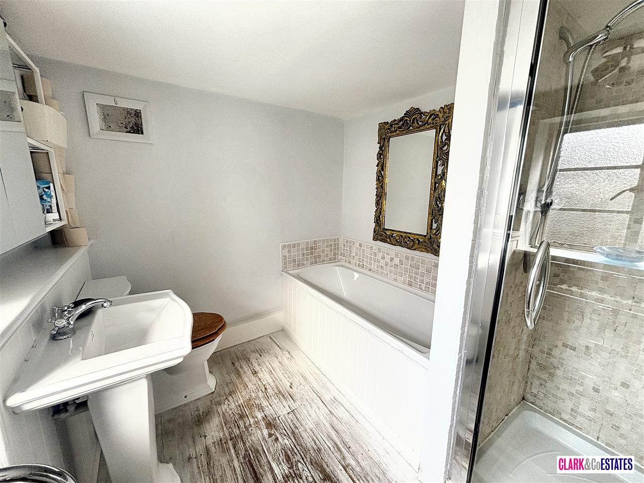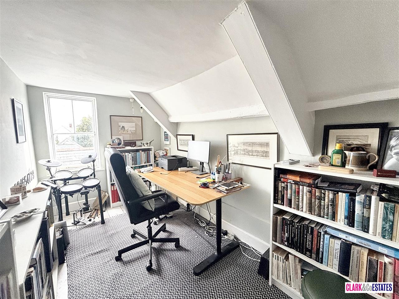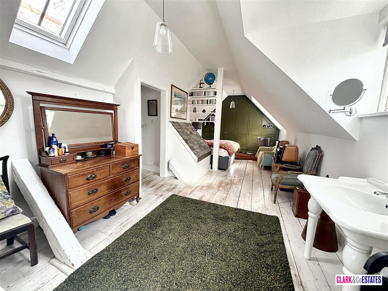 Well proportioned master bedroom with dorma and velux windows offering views of Haldon Hills, roll top bath, wash hand basin and good size fitted wardrobes. Shower room with walk in shower. Bedroom 5 currently used as an office to the front.