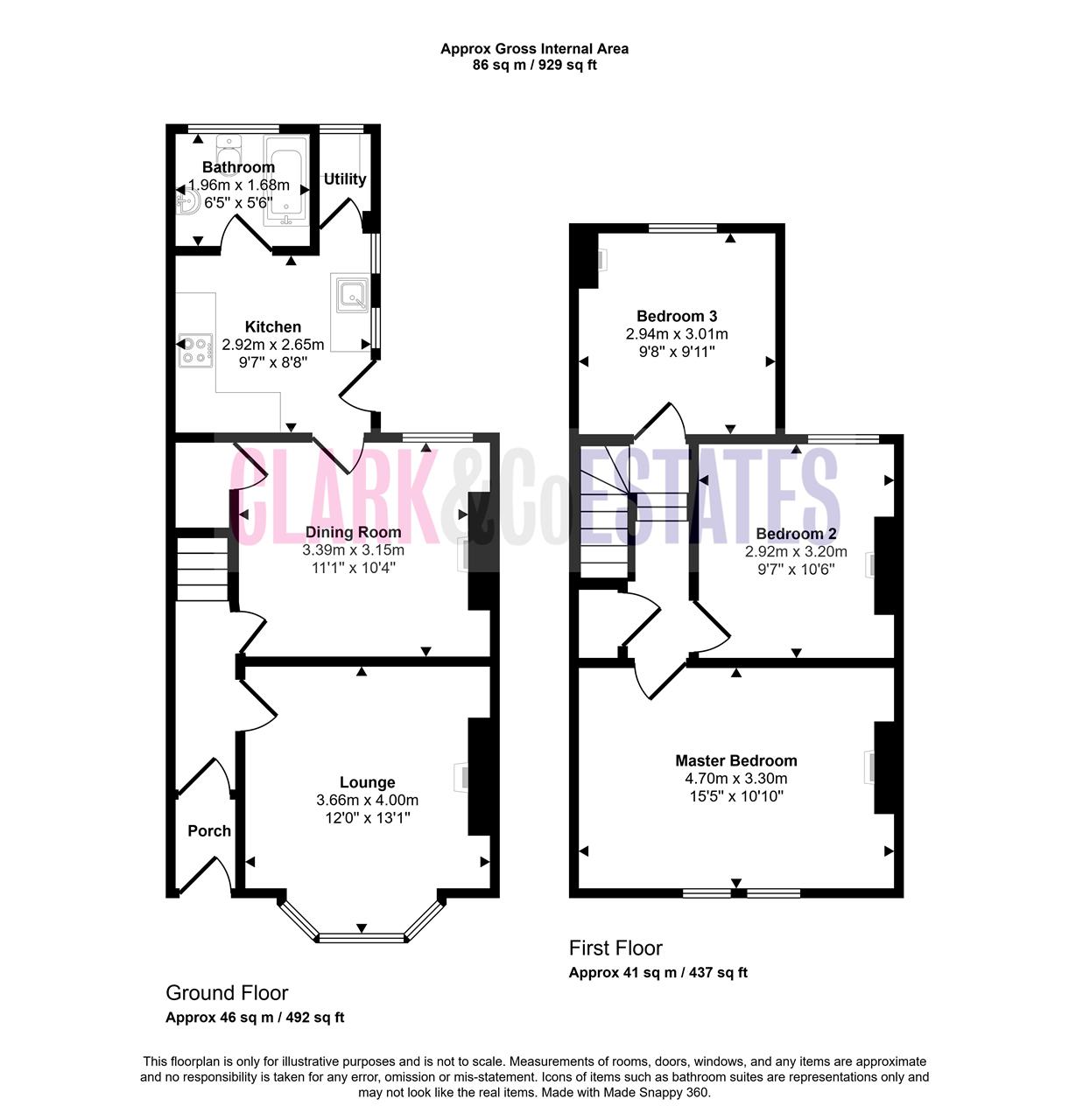 Entrance porch with a door leading into the main hallway. Hallway with stairs rising and doors to both reception rooms. Good size lounge to the front with a bay window boasting plenty of natural light and an open fireplace. Further reception room in the middle of the property previously used as a dining room with a period fireplace and window to the rear. At the rear of the property is a fitted kitchen with ample space for appliances, utility area and a door to the garden. Main bathroom at the rear. Both fitted in the in past few years.