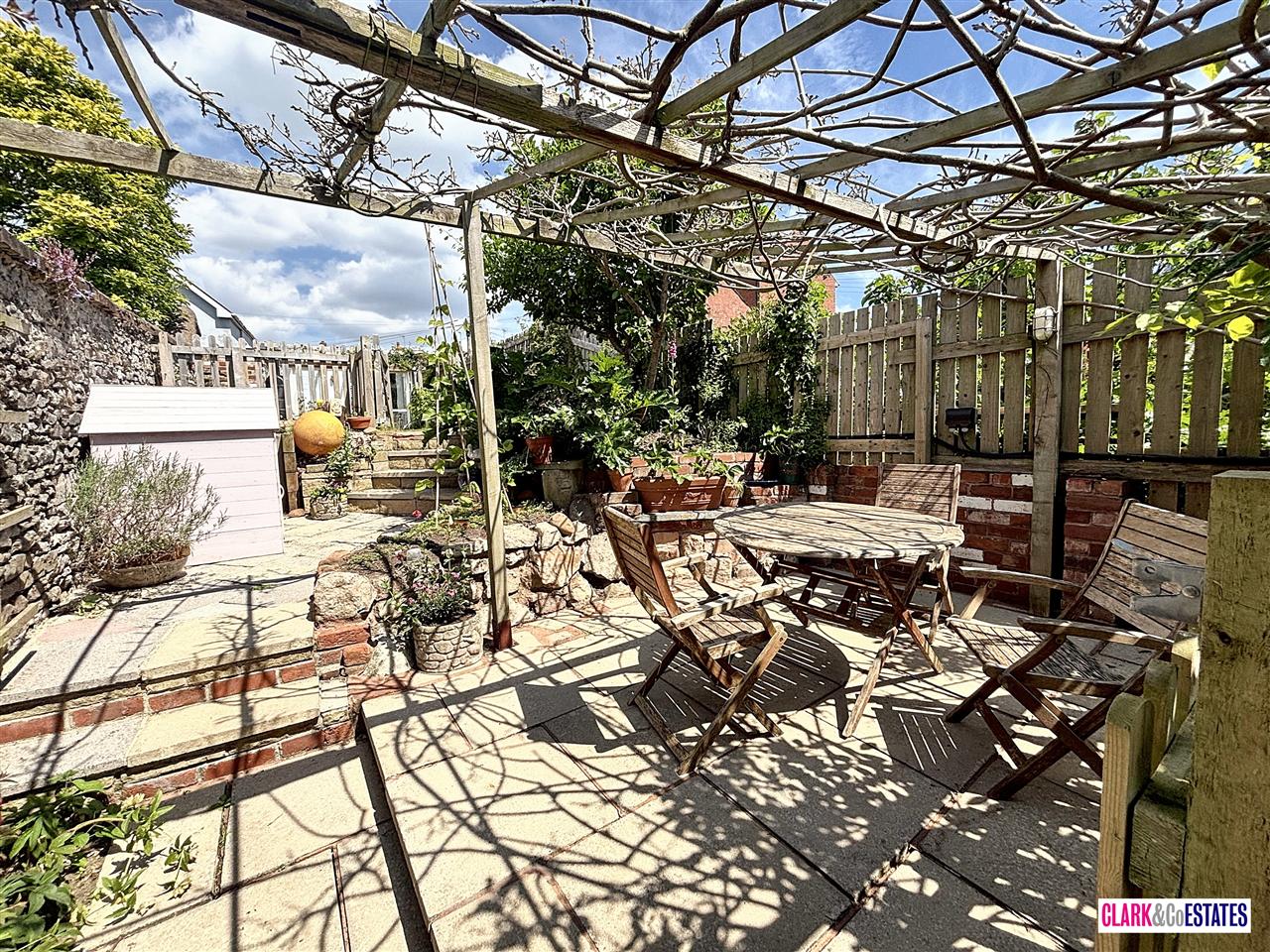 The tiered garden offers a diverse outside lifestyle. Courtyard area with steps leading up to the patio with a wooden pergola this section is ideal for alfresco dining. Further steps leading to the lawned area with a secure gate, flower beds and a large summer house. Access to the garage and allocated parking space.
