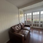 A charming double bedroom with mahogany wood laminate flooring. Raised obscure glazed