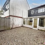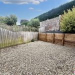 A low maintenance secure rear courtyard garden with raised flower bed. Next to the front door is a useful storage shed. The front garden features tidy shrubs and vibrant, well-planted flower beds.