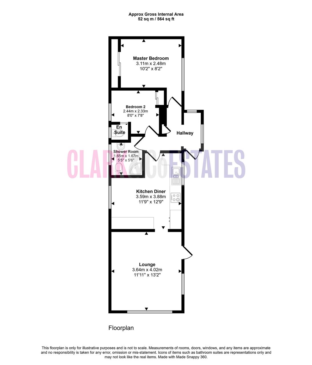 The layout has been designed to maximise the available space, offering a comfortable internal area of approximately 564 sq ft (52 sq m).