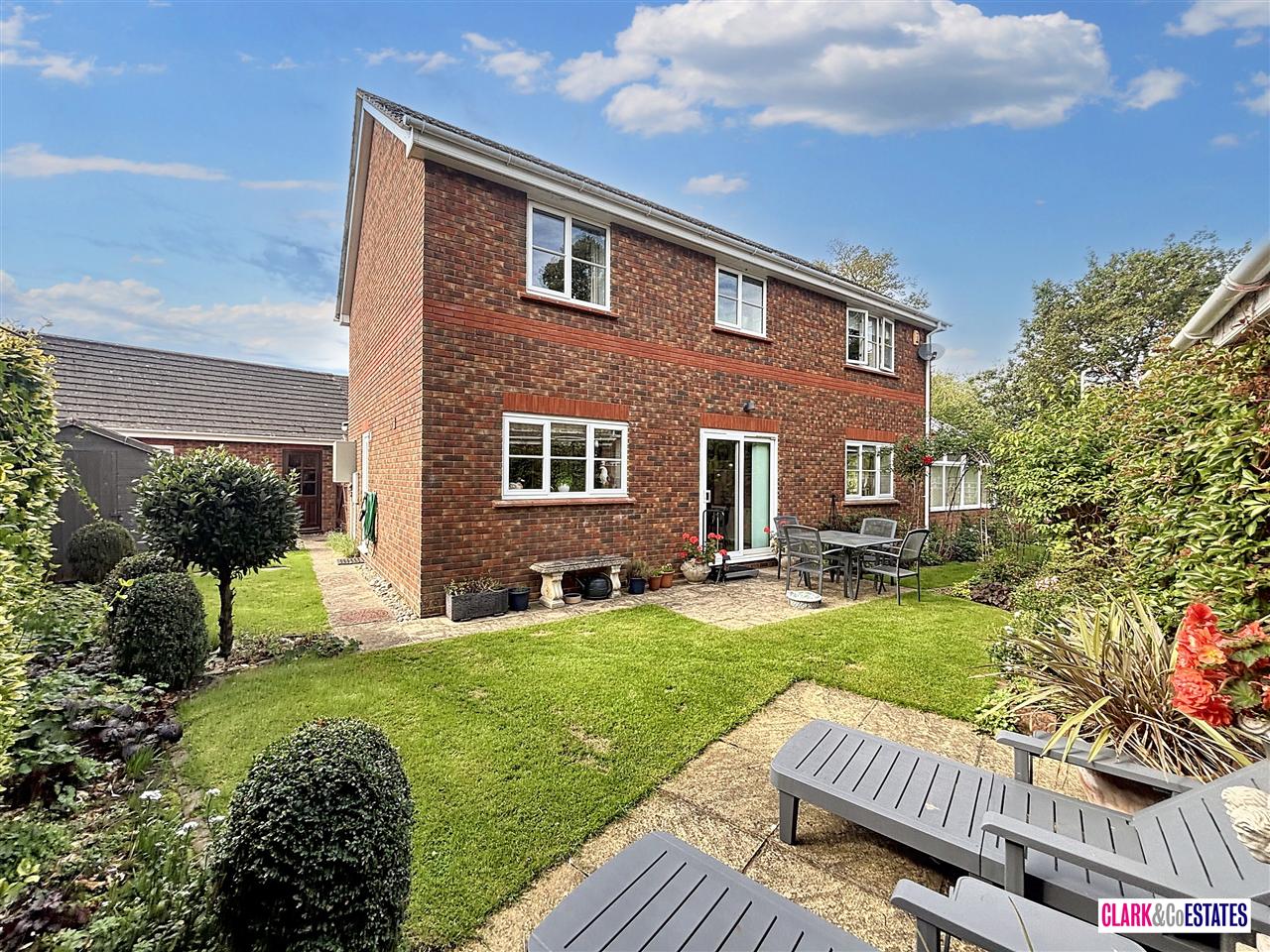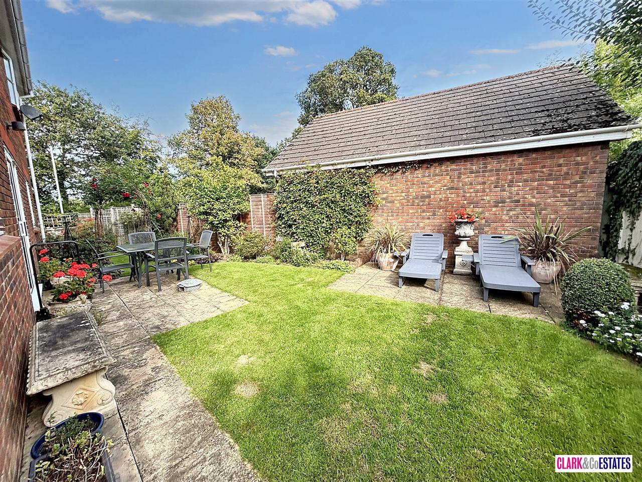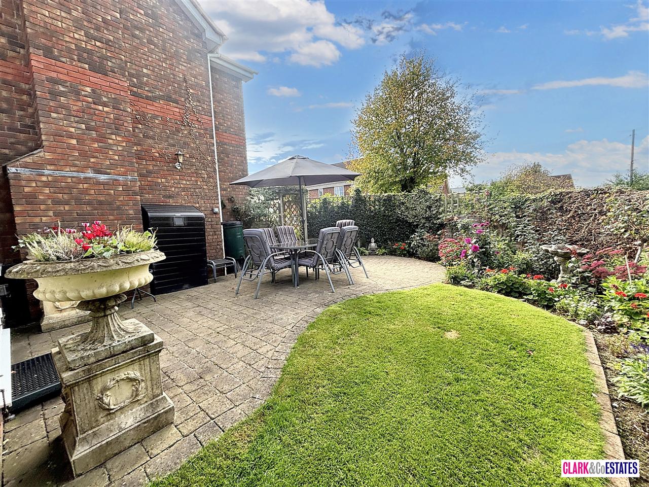 A private wraparound garden mainly laid to lawn with various patio areas, ideal for alfresco dining. There is a selection of shrubs, plants and bushes. Garden shed and access into the double garage. To the front is ample parking and access into the garden either side. Garage with an electric up and over door.