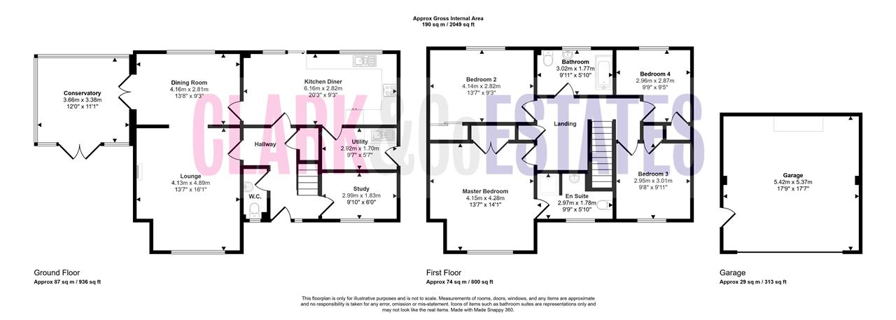 Sizeable entrance hall with stairs rising, understairs storage and a WC. Office/study with a window to the front. Also at the front of the property is a large lounge with an lpg fireplace and access into the dining room. At the rear of the property is the good size kitchen diner with a selection of integrated appliances, double doors to the garden, a door to the dining room and further door to the hall. Just off the kitchen is a utility room with a door to the garden. Dining room with double doors to the conservatory. The conservatory is also a good size and has double doors to the front garden.
