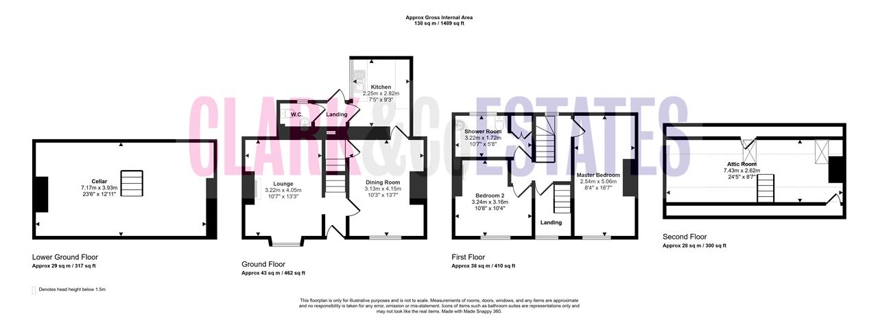 Landing with doors to all rooms. Sizeable master bedroom with an outlook to the front and boarded up fireplace. Second double bedroom with an outlook to the front and a decorative period fireplace. Shower room to the rear with a storage cupboard. Further landing with steps rising.