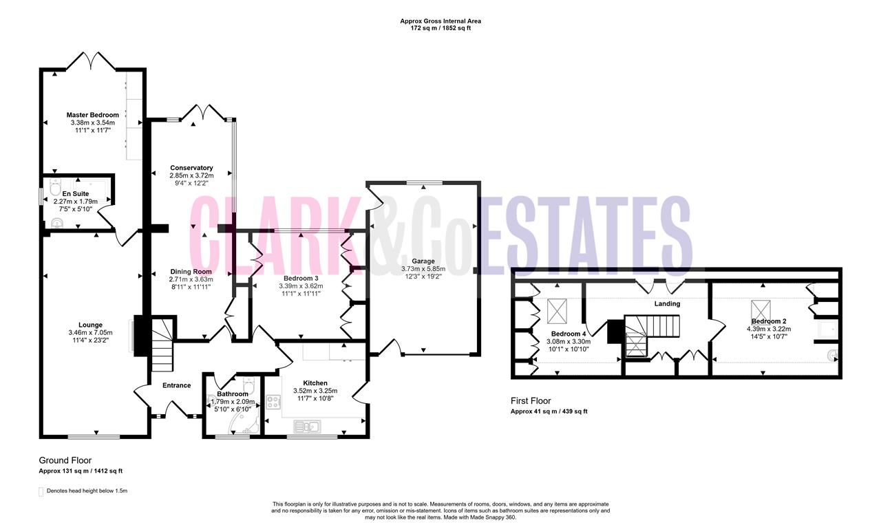 Spacious entrance hall with doors to all rooms and stairs rising. To the front is the large lounge with an electric fireplace. To the rear of the lounge is the master bedroom with fitted wardrobes and double doors to the garden. Ensuite shower room. Also to the rear is the sizeable dining room which opens to the conservatory boasting double doors to the rear. The fitted kitchen has a selection of integrated appliances, door to the side and an outlook to the front. The third bedroom is also located on the ground floor with an outlook to the rear and fitted wardrobes. Main family bathroom.