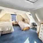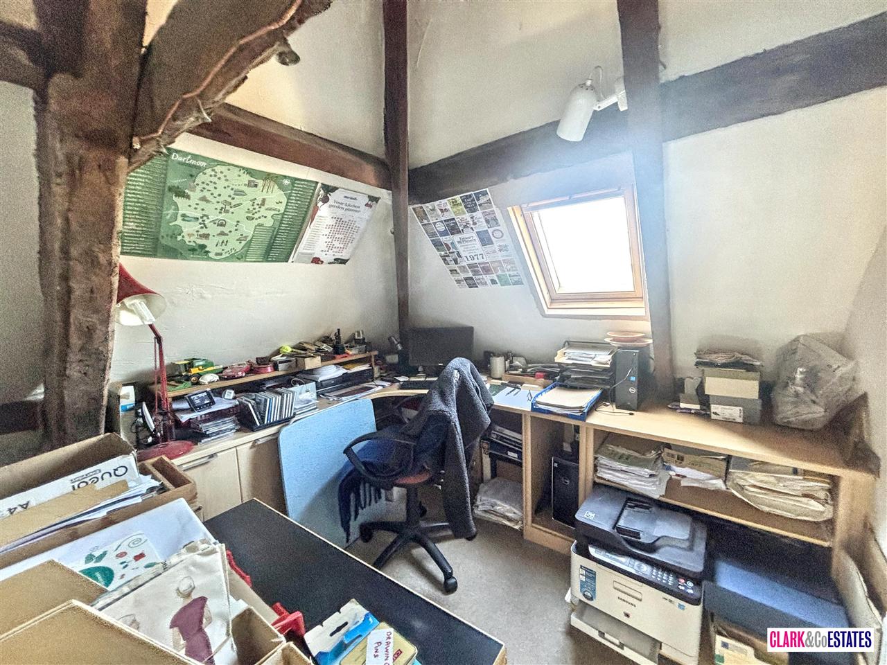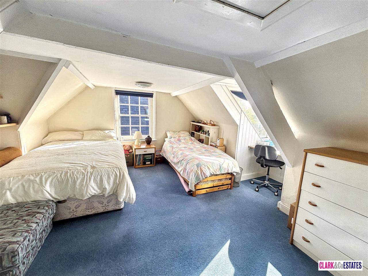 Master bedroom with ample storage in the eaves and a dormer window with lovely views of Haldon Hills. Fitted study with a velux window.